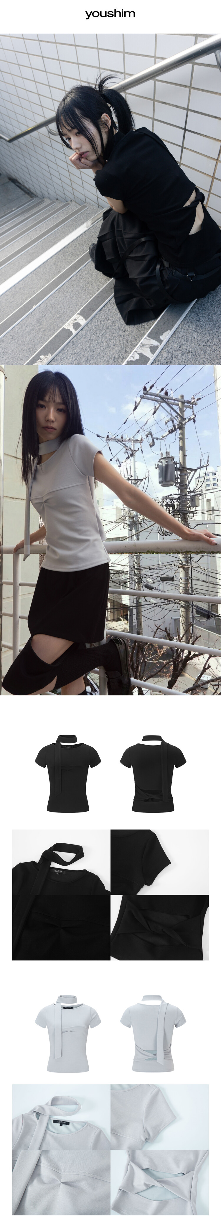 BACK TWIST CUT-OUT TOP & SCARF SET_BLACK