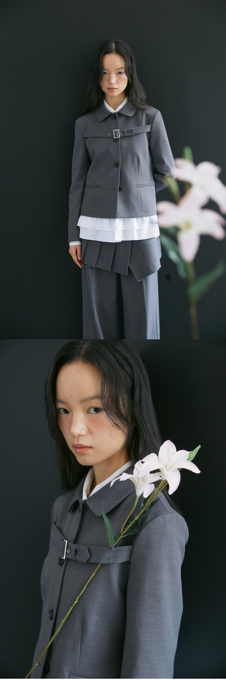 클래식한 테일러링 & 벨트 디테일의 싱글 재킷
