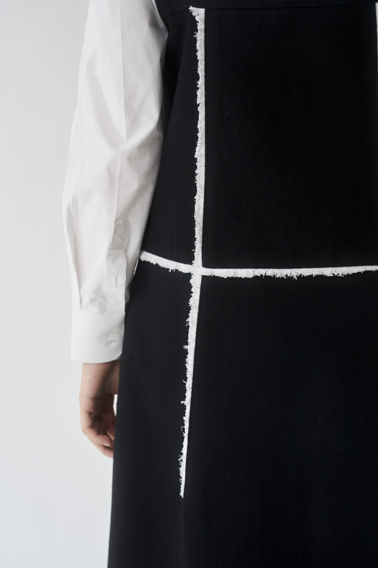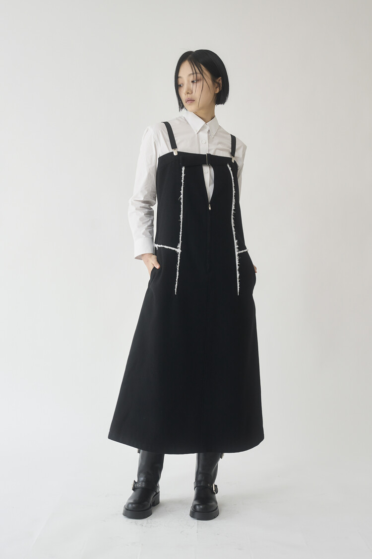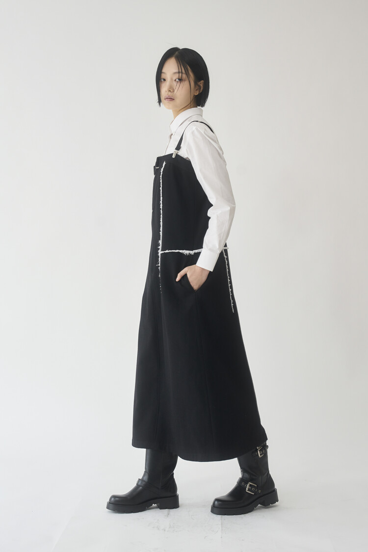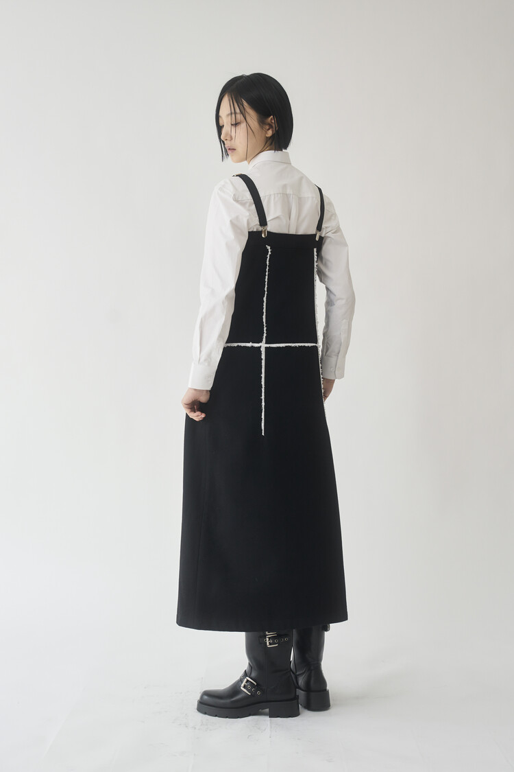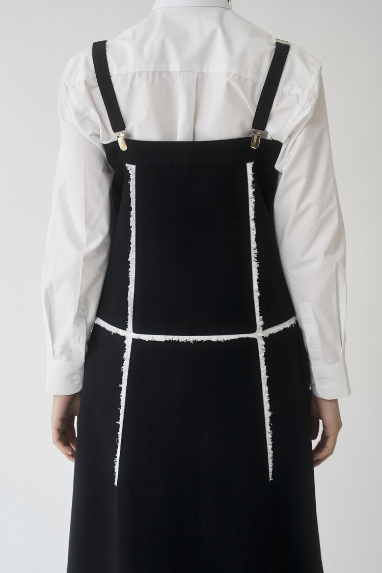 - The front belt adjusts around the chest, and the tensioned suspenders allow for flexible adjustment.