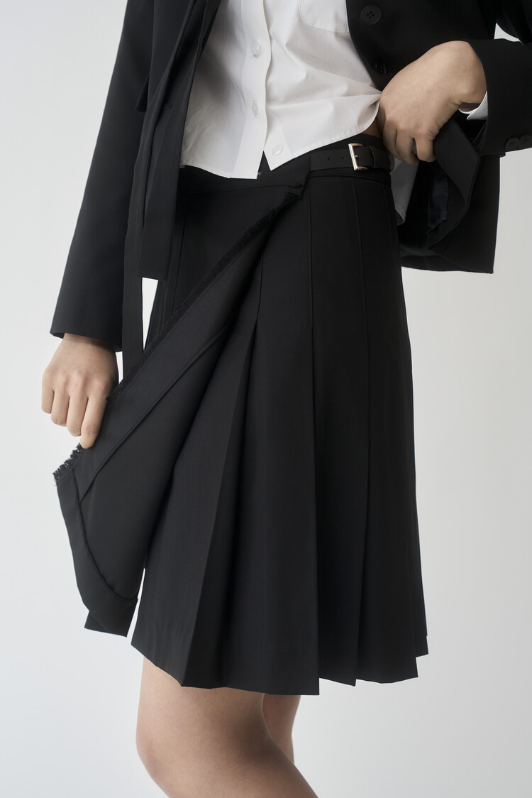 - This kilt skirt has a pleated + wrap shape.
